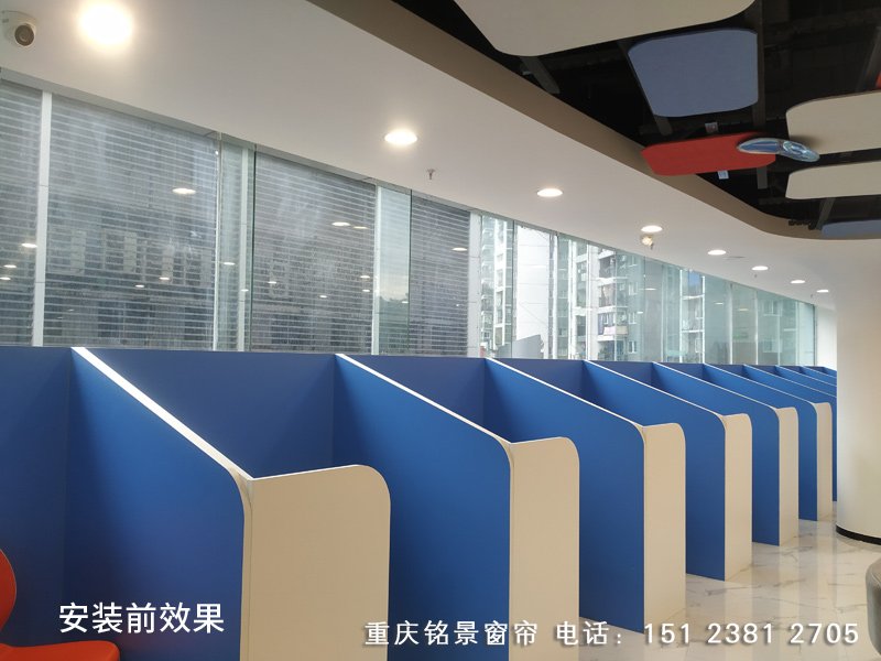 京翰教育重庆南岸区分校卷帘窗帘安装完工,客户选择的是加厚遮阳面料,手动拉珠式,采用背面打印卷帘LOGO,达到专业和宣传效果,以下是现场安装效果图。