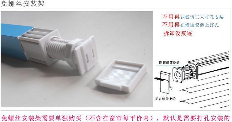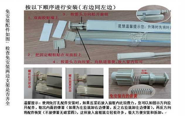 免打孔百叶窗安装的好处,不用花钱请工人来打孔安装,不用在墙面或者瓷砖上钻孔。拆卸没有痕迹。
