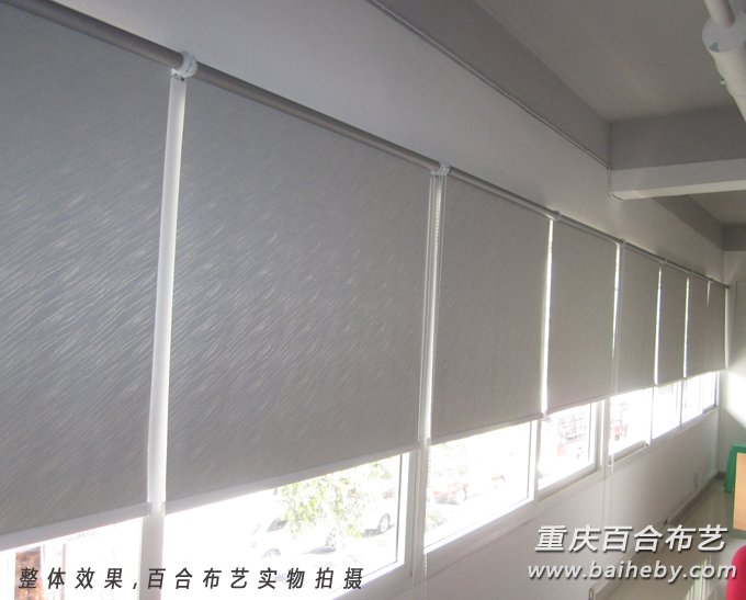 重庆办公卷帘窗帘效果图 ,百分百实物真实拍摄,办公卷帘窗帘效果图由重庆百合布艺推出,让您在选择办公卷帘的时候提供参考。一起来看看吧。 卷帘一般分为半遮光和全遮光。首先来看看半遮光的: