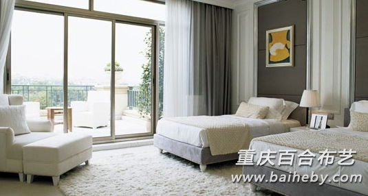 四、卧室在家庭中属于私密空间,因此,保护隐私应是卧室窗帘的主要作用所在,而使用深色调、质地厚的窗帘就有较好的保护隐私的作用,同时利于人的睡眠。