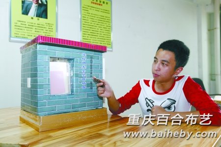 昨日下午,记者在渝高中学九龙坡校区见到了杨书翰的调光玻璃,玻璃外观和普通玻璃大致相同,被安装在一座房子模型的墙面上,控制它的遥控器只有一个按键。接通电源,在遥控器上打开开关,玻璃立刻变透明;关闭开关,玻璃立刻变得像磨砂玻璃一般,透过玻璃看不到任何景物,就像挂了窗帘一样。原来,这是液晶材料在发挥作用。“我在两块玻璃中间夹了一张液晶膜,膜的下方安装了两个电极,当调光玻璃关闭电源时液晶分子会呈现不规则的散布状态,此时玻璃呈现出透光而不透明的状态;当给调光玻璃通电后,里面的液晶分子呈现整齐排列,光线可以自由穿透,此时玻璃瞬间呈现透明状态。”