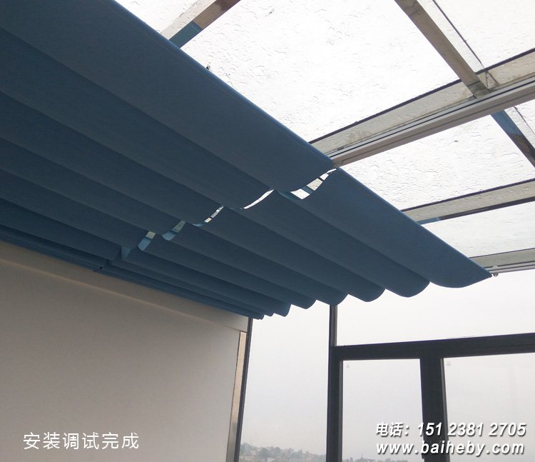 四川邻水县阳光房电动天棚帘安装完工,客户选择的是电动双轨道折叠天棚帘,颜色为蓝色加厚全遮光。阳光房搭建结构为不锈钢,比一般的铝合金安装麻烦,但我们专业的安装师傅,还是很敬业,在这里值得称赞下。安装过程中,也是遇到各种小问题,都一任而解了。