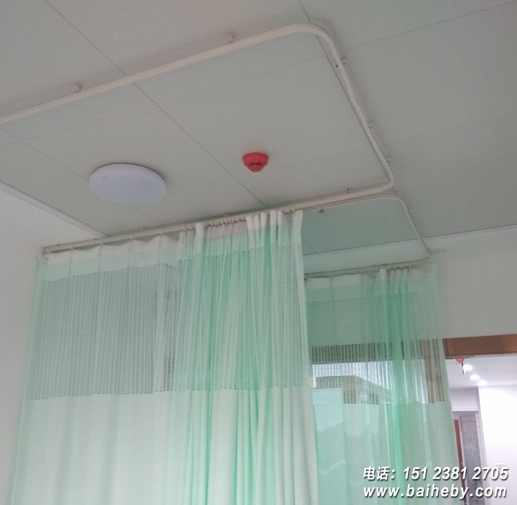 安装好之后的医用隔帘效果,是全包围床位隔帘