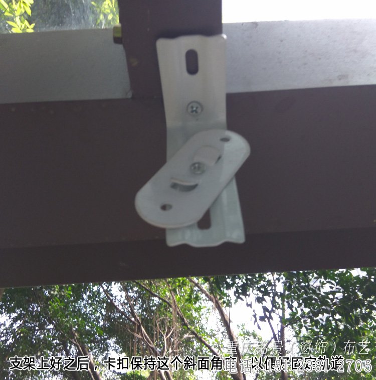 安装第一步:需要把支架安装在两端,如果是两组天棚帘,中间支架需要上两个卡扣,达到一个支架可以装两根轨道。