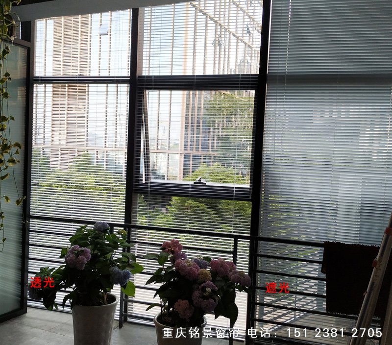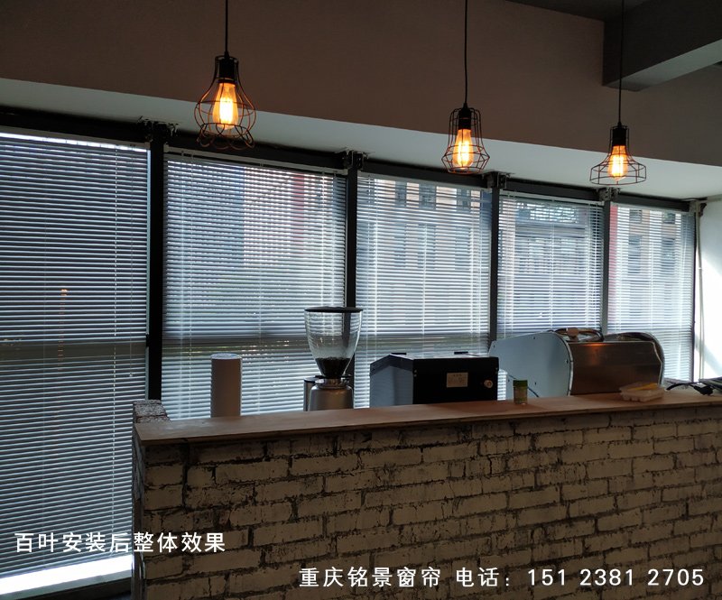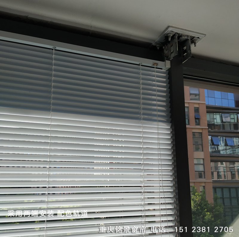 重庆创意工业园区办公室百叶帘安装实拍图,客户选择的是纯白色铝合金百叶帘,手动转棒式。下面是现场安装后的实拍图。