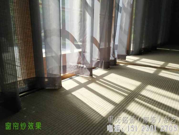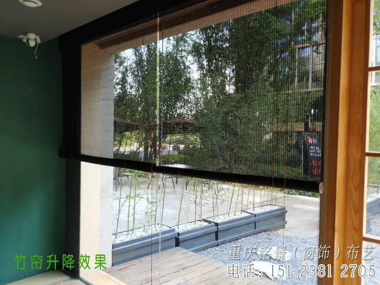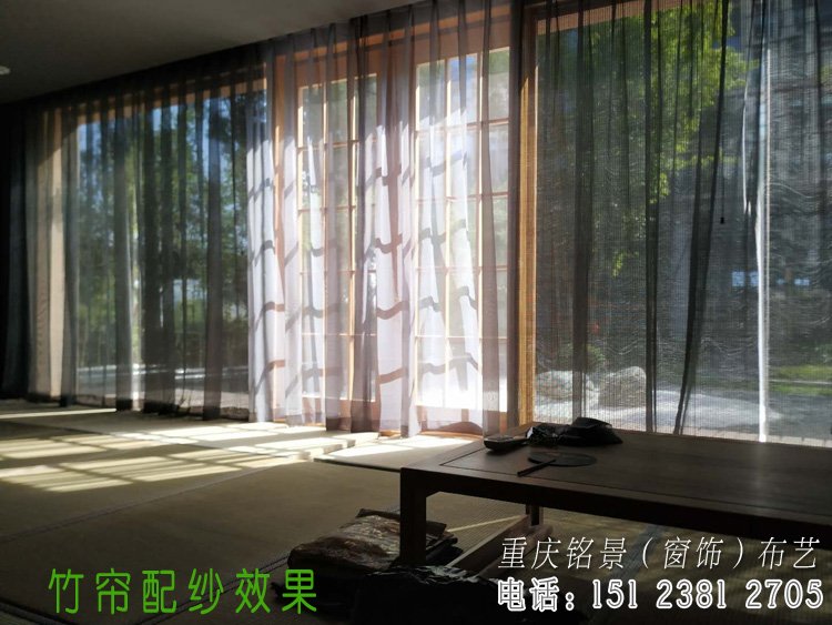 该茶室是有点日式风格的装修,采用竹帘加纱搭配风格,里面是竹帘,外层是窗帘纱,今天安装完工,以下是现场实拍图。